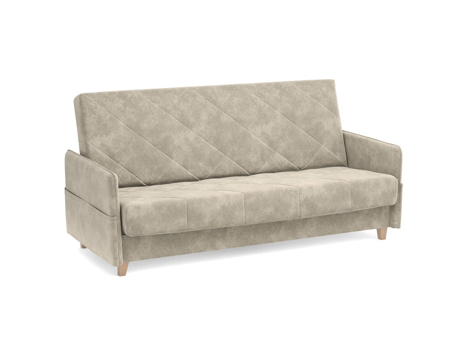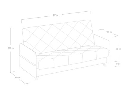 Диван для сна в скандинавском стиле с механизмом трансформации «клик-кляк» и коробом для хранения. Основание дивана металлическое, с ламелями. Матрас анатомический с независимым пружинным блоком. Благодаря съемному чехлу с объемной стежкой в форме ромбов, диван органично впишется в современные интерьеры в скандинавском стиле и стиле минимализм.