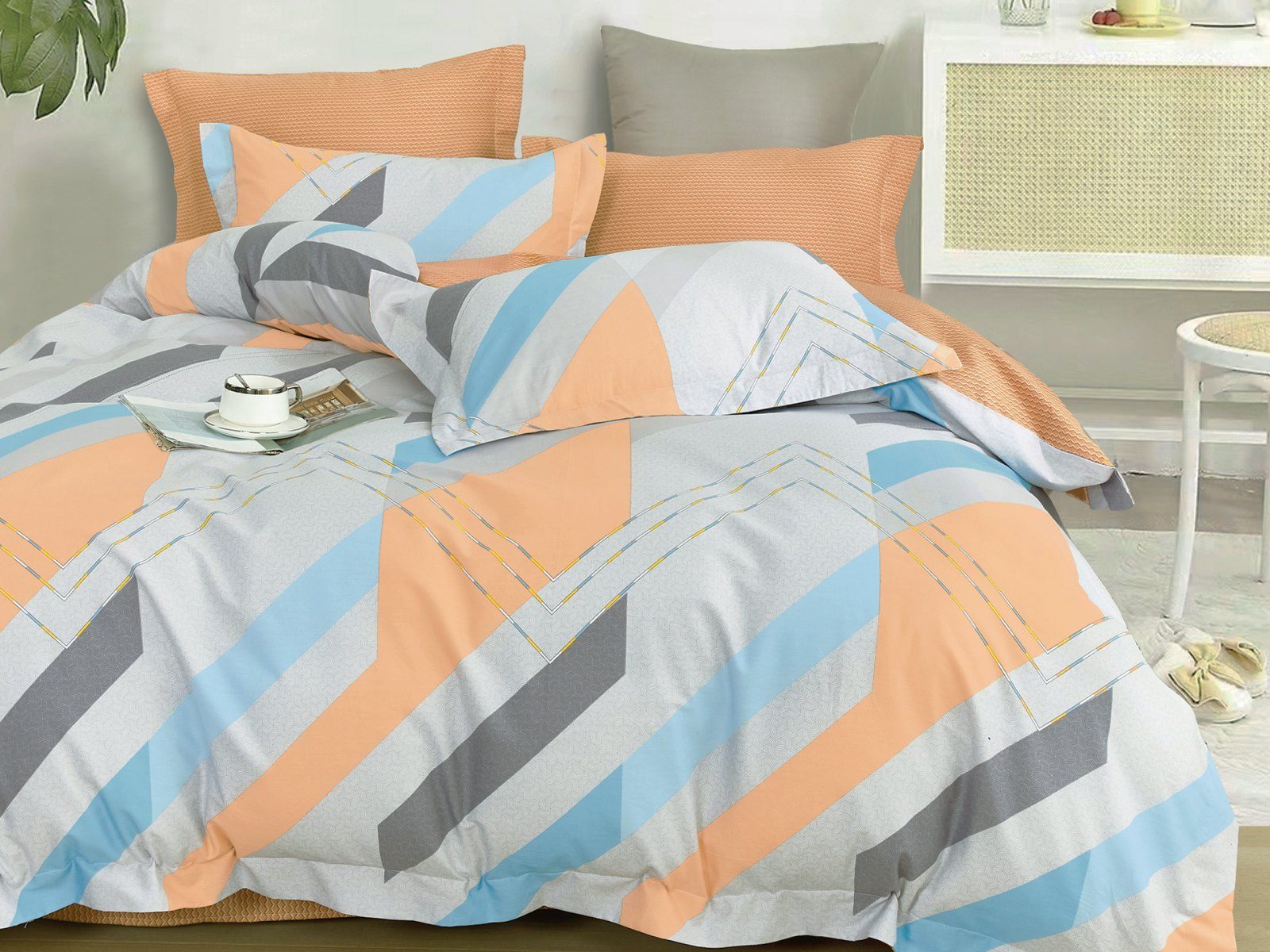 Все наволочки имеют удобный клапан и декоративную отделку "ушки". Пододеяльник двухсторонний, поэтому Вы сможете менять вид постели в зависимости от настроения. Для удобства пододеяльник застегивается на молнию, что значительно упрощает процесс его замены.