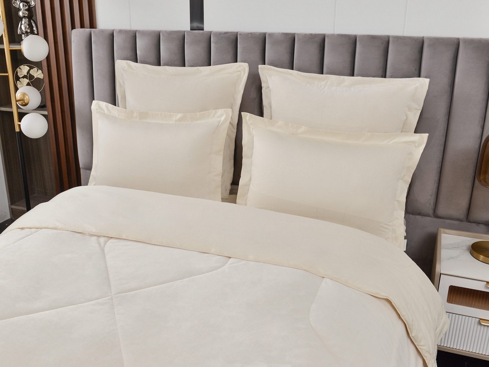 Изготовленный из качественной вискозы и мягкого хлопка трендовых цветов, комплект создаёт приятное ощущение на коже. Его экологичное наполнение из 100% эковолокна обеспечивает гипоаллергенные свойства, подарив вам спокойные и уютные ночи.