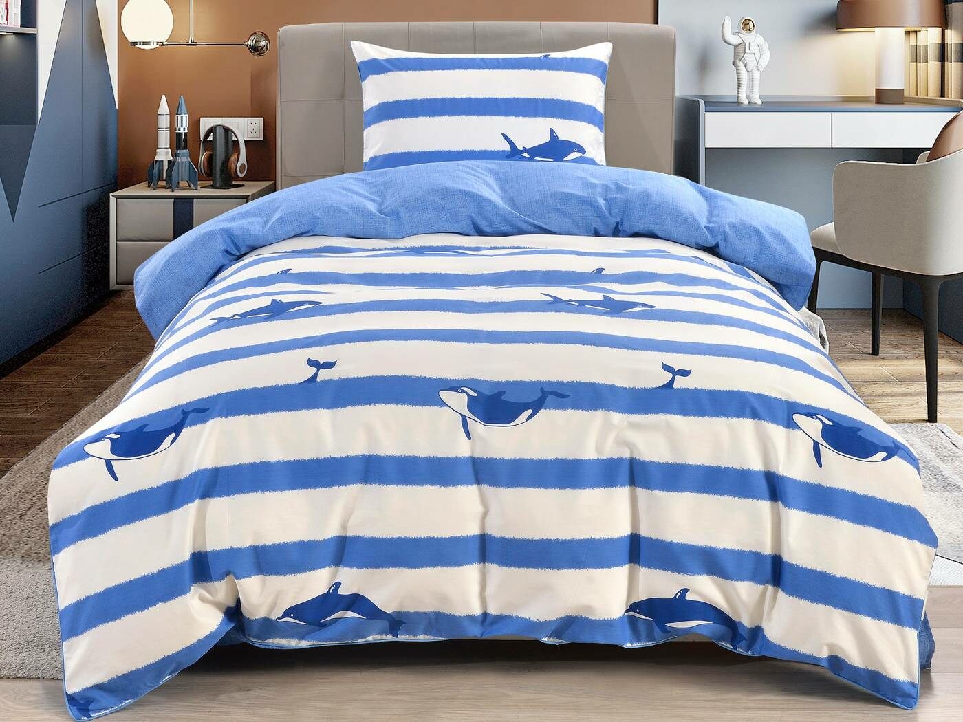 Комплекты выполнены из 100% хлопка, он гарантирует качественный сон, т.к. натуральная ткань хорошо впитывает влагу и позволяет коже дышать. Натуральные материалы не вызывают аллергии. Огромная палитра оттенков и яркие дизайны комплектов понравятся детям и подросткам.