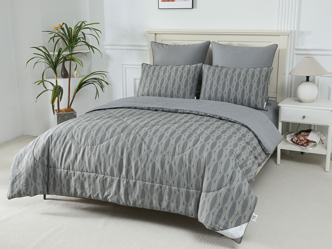 Особенность: двусторонняя модель, наволочки и одеяла декорированы кантом.