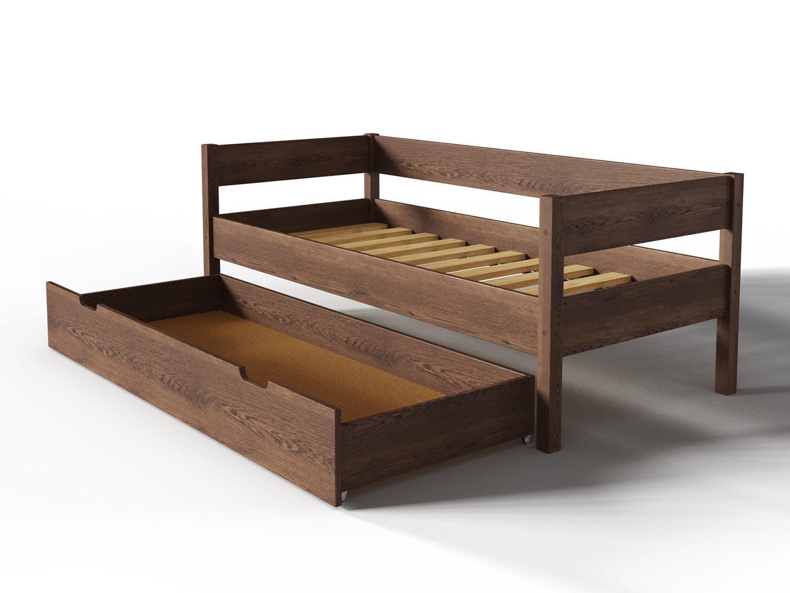 Компактная кровать «Алекса» легко впишется в любой современный интерьер детской комнаты или спальни. Ортопедическое основание кровати позволяет сформировать идеальное спальное место, подобрав матрас необходимого уровня жёсткости. Под основанием кровати расположен вместительный ящик для постельных принадлежностей.