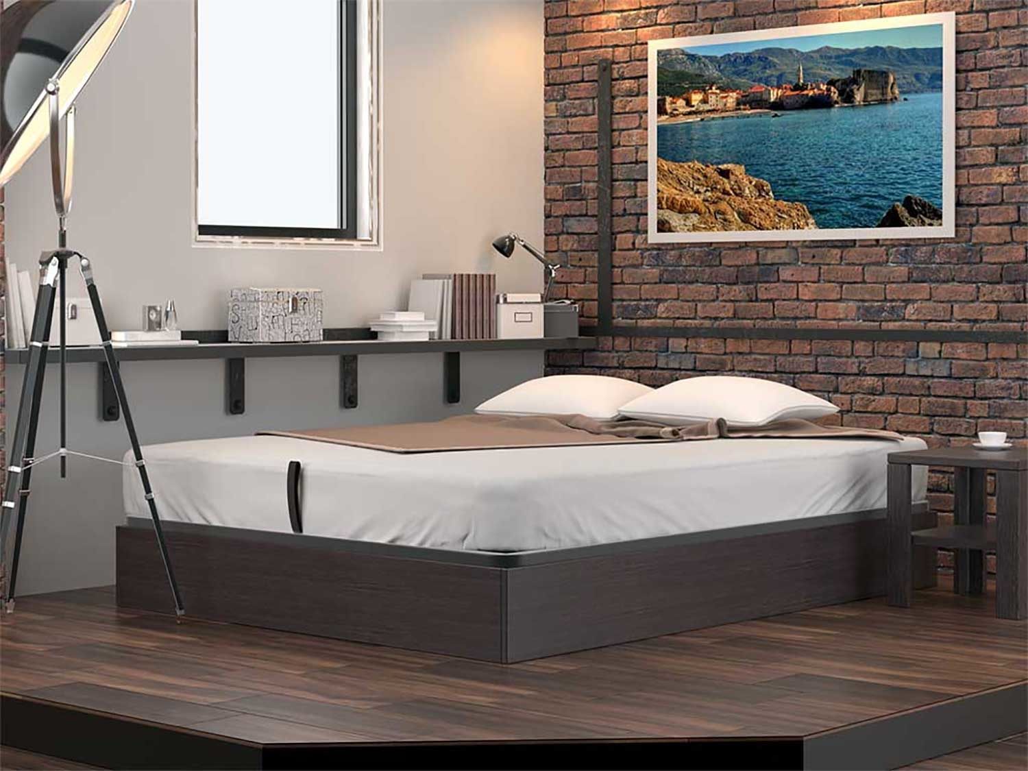 Кровать Куб представляет собой металлическое основание с ламелями из березового шпона и ящик для белья, которые соединены специальным механизмом подъема, который рассчитан под вес матраса. Ящик изготавливается из мягколиственных пород древесины (МЛПД). Стандартно предусмотрено основание Dream. Требуется сборка. Внешние габаритные размеры: - 4 см по длине и ширине.