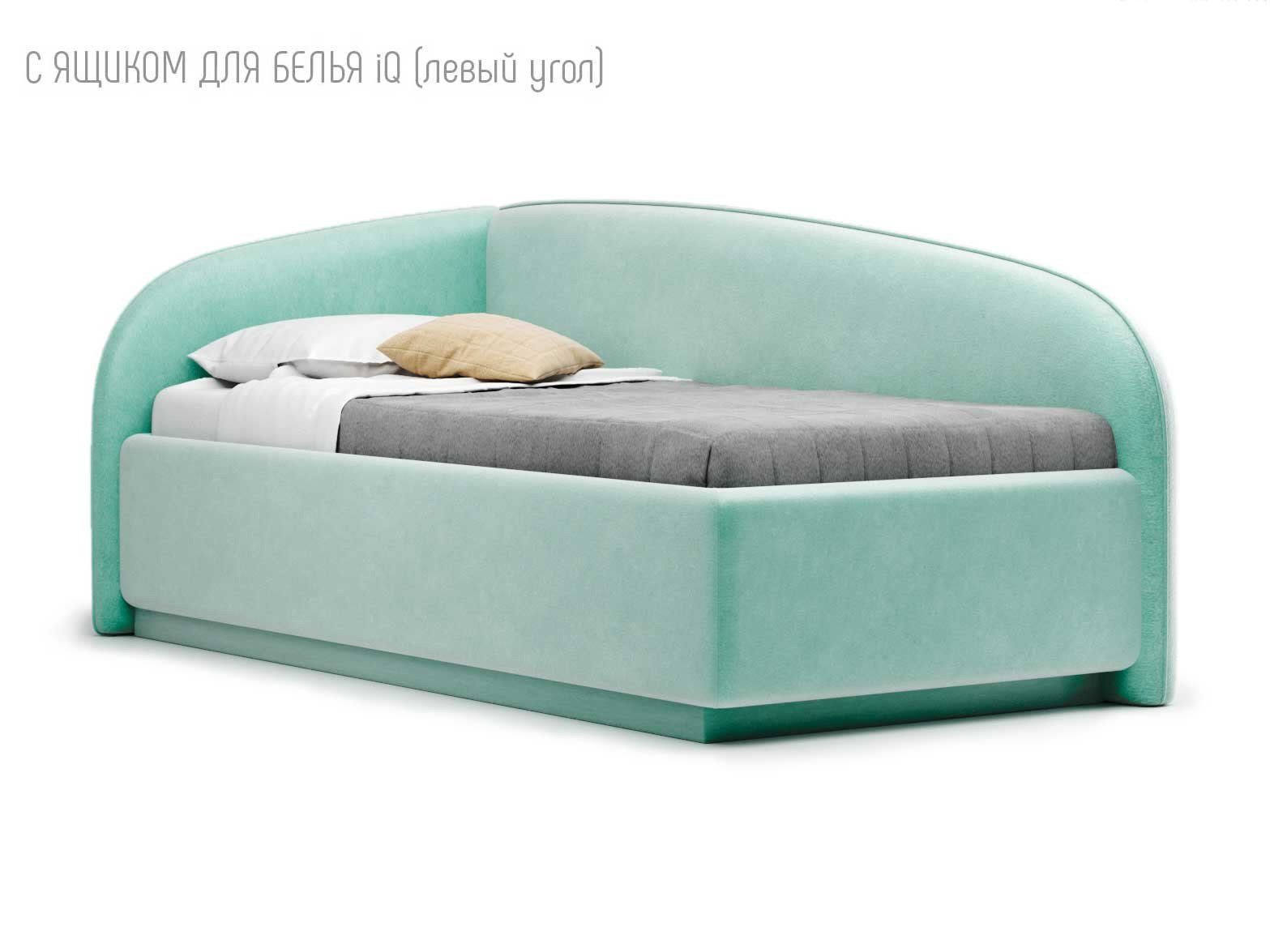 Кровать укомплектована IQ с подъемным механизмом и ящиком для белья без дна (дополнительная платная опция - дно к ящику IQ из HDF (ХДФ). Каркас кровати на цоколе, декоративный чехол на цоколе съёмный. Глубина ящика для белья - 30 см, без ограничения нагрузки на ящик.