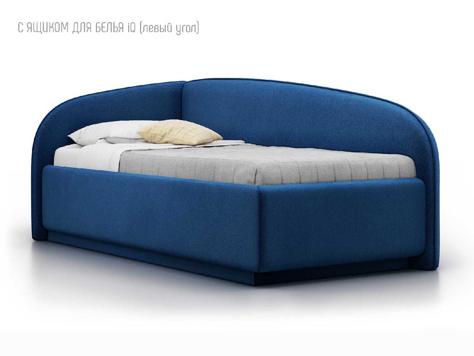 Кровать укомплектована IQ с подъемным механизмом и ящиком для белья без дна (дополнительная платная опция - дно к ящику IQ из HDF (ХДФ). Каркас кровати на цоколе, декоративный чехол на цоколе съёмный. Глубина ящика для белья - 30 см, без ограничения нагрузки на ящик.