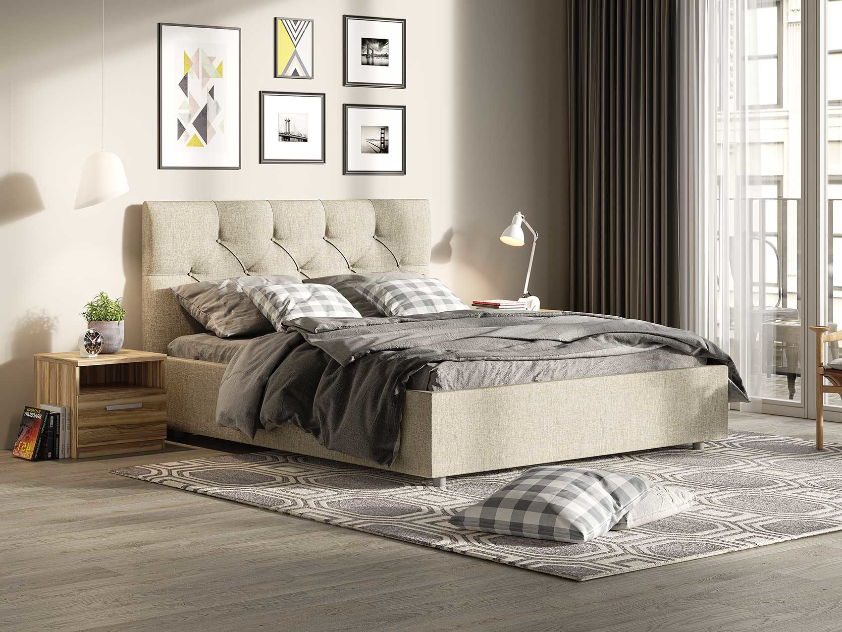 Элегантная классическая кровать с эффектной каретной стяжкой. Модель изготовлена из ДСП. При необходимости кровать может быть укомплектована подъемным механизмом с бельевым ящиком или трансформируемым основанием Aquarius (размером 160-200).