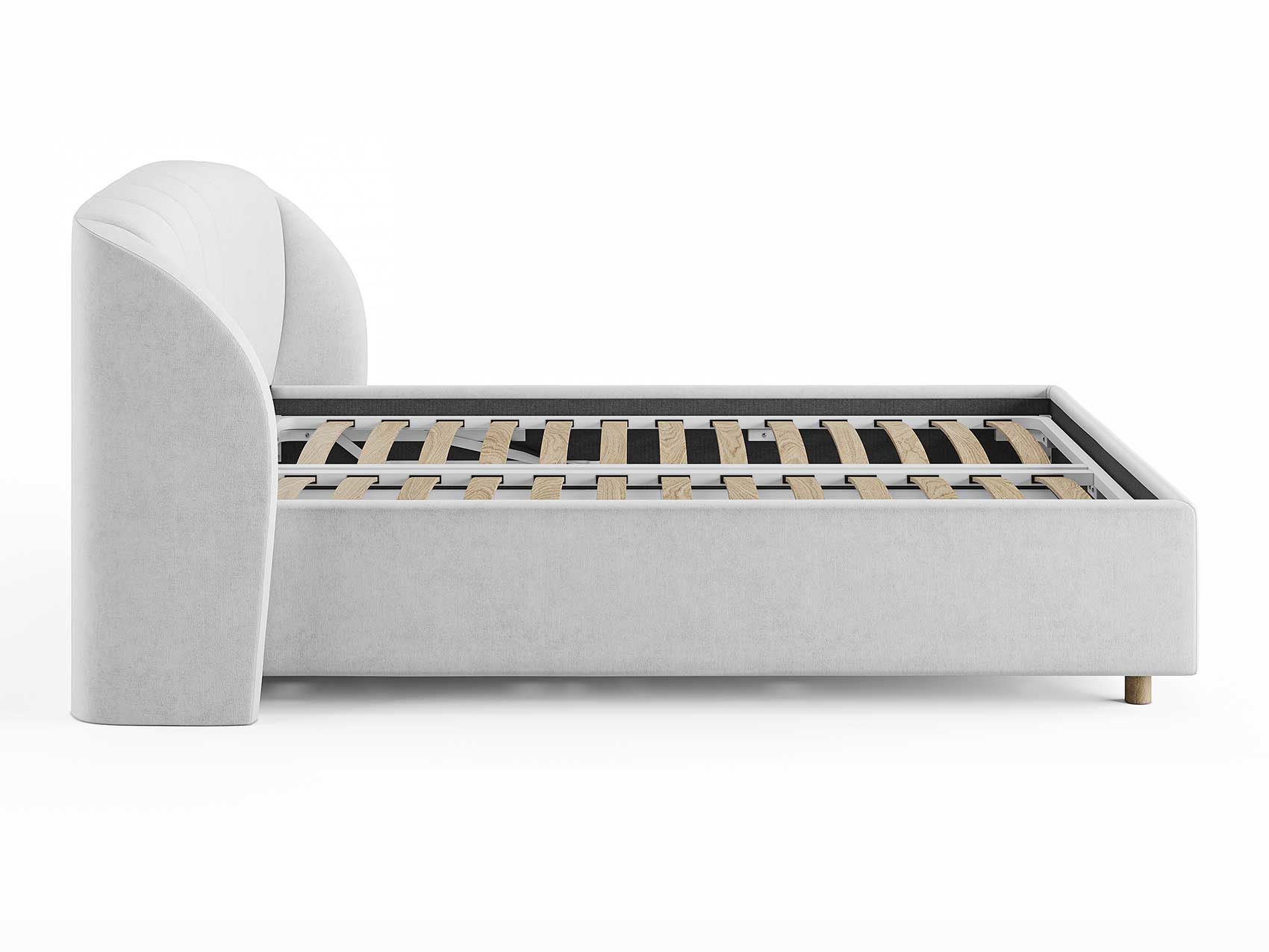 Кровать комплектуется металлическим основанием (без опор), которое имеет 13 рядов встроенных березовых ламелий на каждое спальное место, обеспечивая равномерное распределение нагрузки.