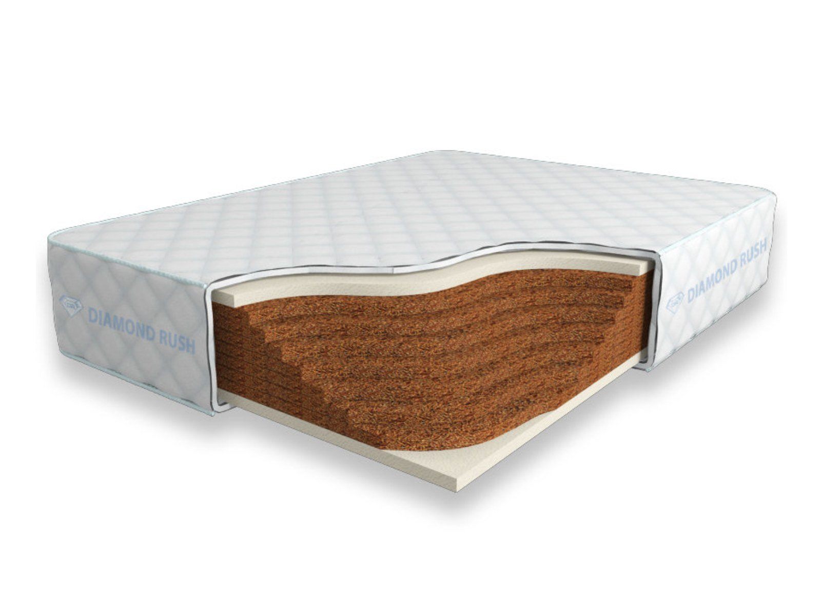 Матрас Diamond Rush Cocos Lite 27 SD является беспружинным, т.е. не имеет в своей основе пружинного блока. В основе модели идут кокосовые плиты, их количество зависит от требуемой высоты матраса. Сверху и снизу для большего комфорта и придания средней жесткости прокладываются листы по 3см искусственного латекса. Эта модель имеет идентичные по жесткости стороны.