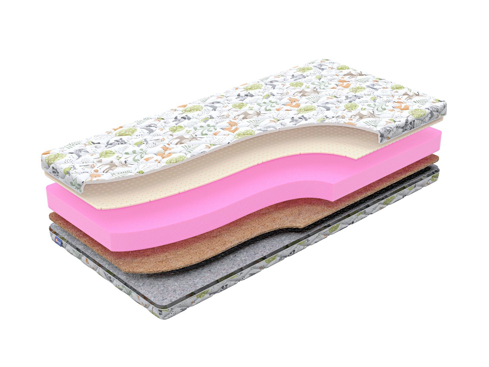 Димакс Очумелкин – это беспружинный детский матрас с двумя разными сторонами кокосовой и латексной. Такая конструкция позволяет родителям легко адаптировать матрас под потребности растущего ребёнка.