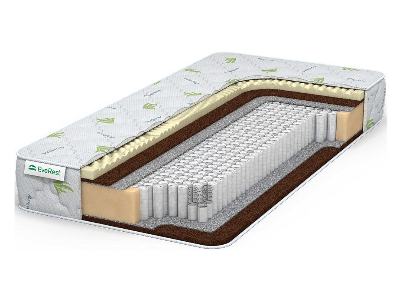 Матрас EveRest Кокос латекс хард S1000 – натуральная модель, базирующаяся на природных составляющих. Изделие получило две спальные стороны с различной жёсткостью – средней и высокой. К тому же матрас выдерживает нагрузку до 130 кг на спальное место.
