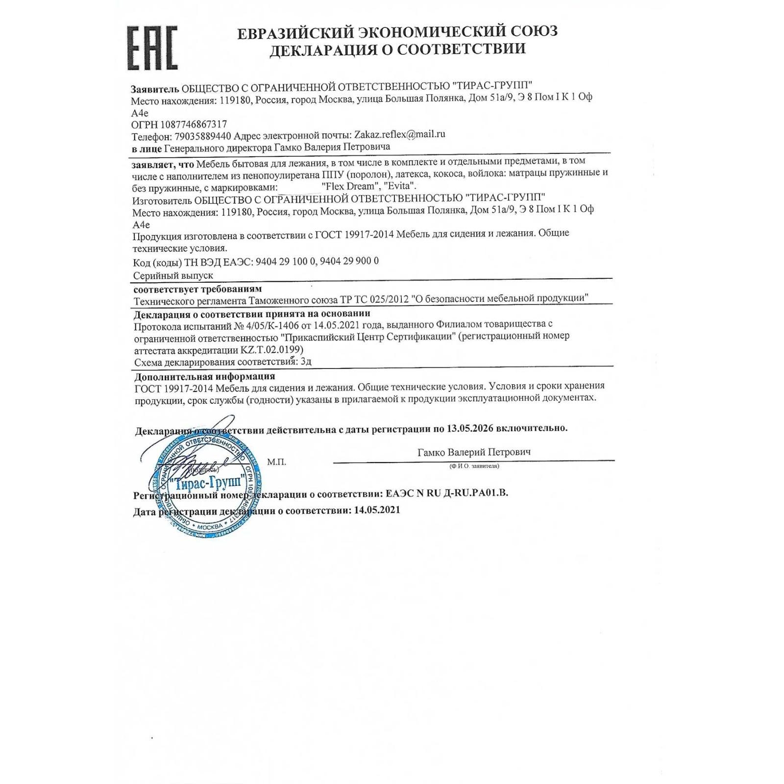 Ортопедический матрас средней жесткости Relax H3 с искусственным латексом, кокосом и блоком независимых пружин в основе.
