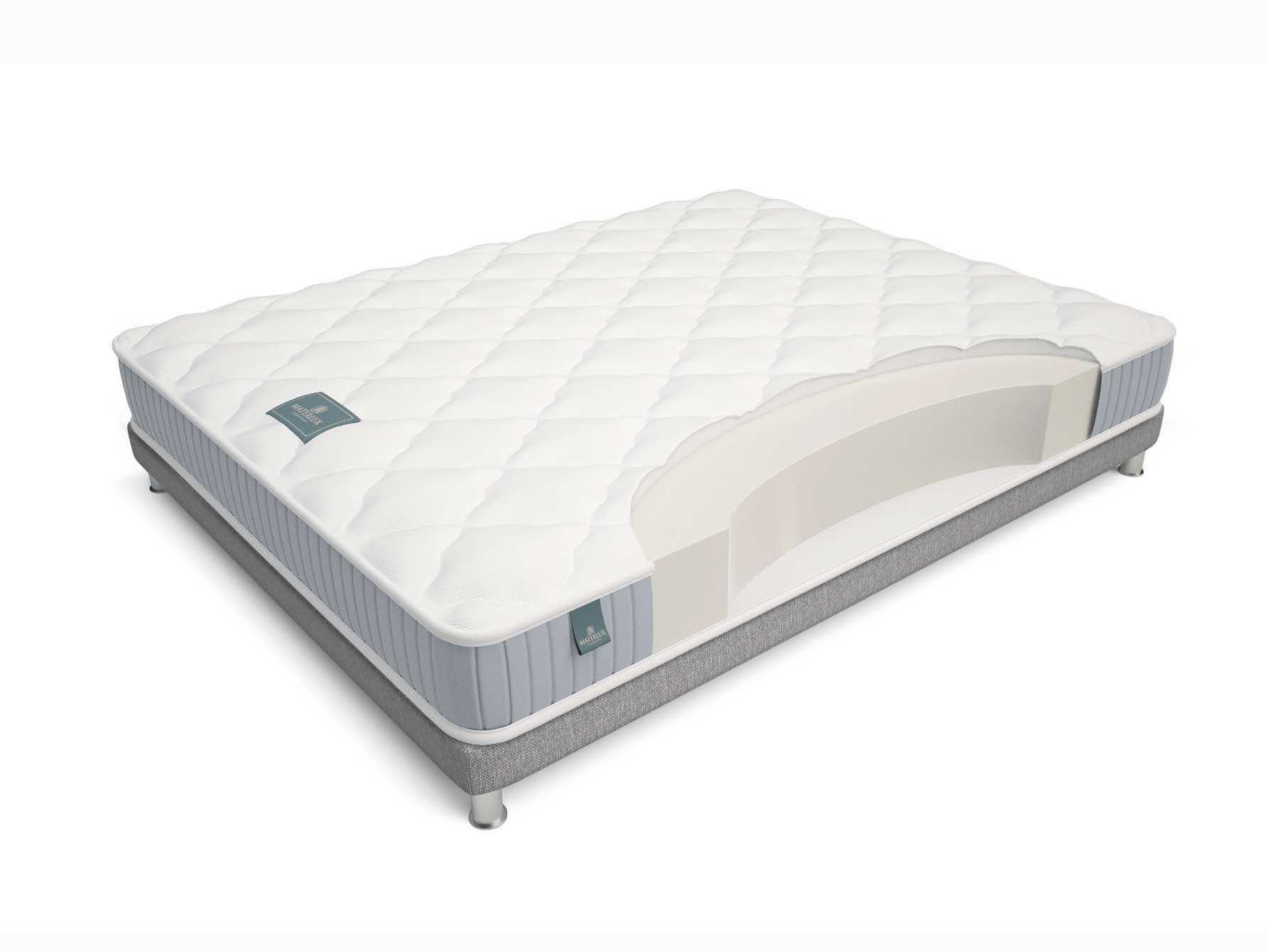 Сбалансированный беспружинный матрас Flora от бренда Materlux спроектирован таким образом, что содержит только один вид наполнителя. Внутри модели расположилась упругая пена Natural Foam объёмом 18 см.