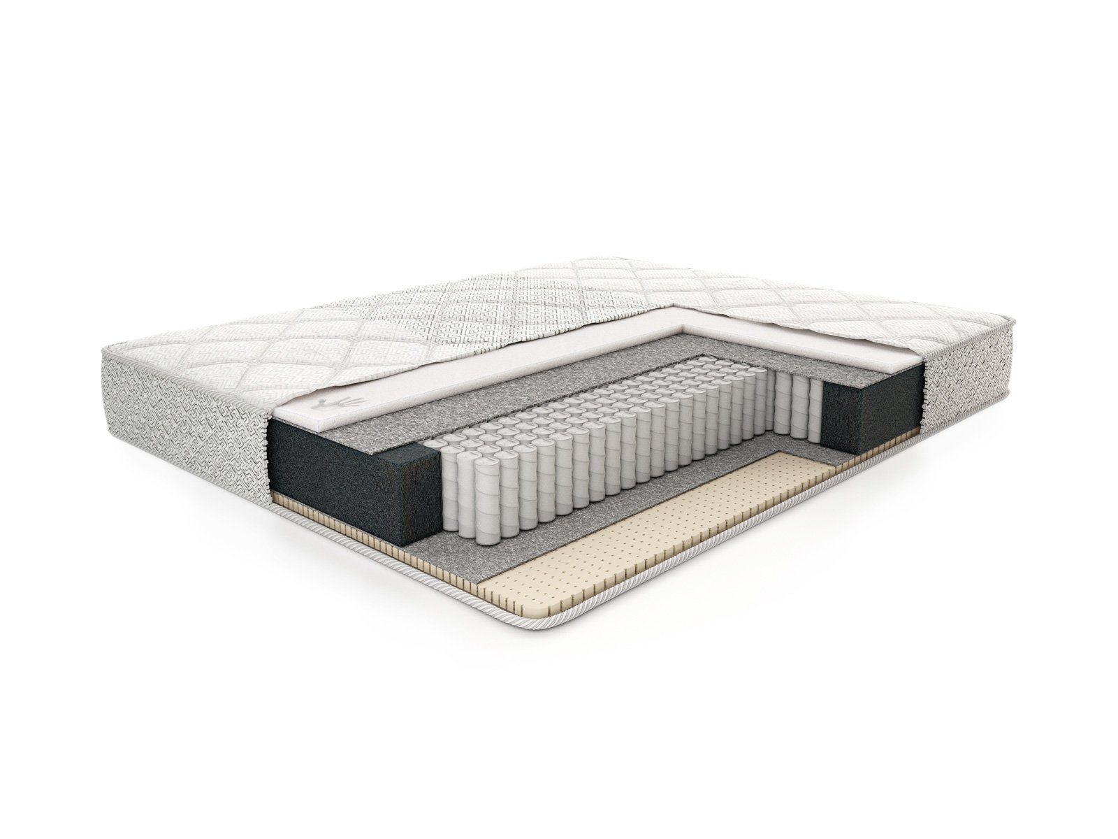 Сердцем матраса выступает пружинный блок, построенный на независимых пружинах. Их количество на спальное место составляет около 500. Благодаря высокой концентрации отзывчивых спиралей матрас не только более качественно распределяет вес, но и получает возможность точечной ортопедической поддержки.