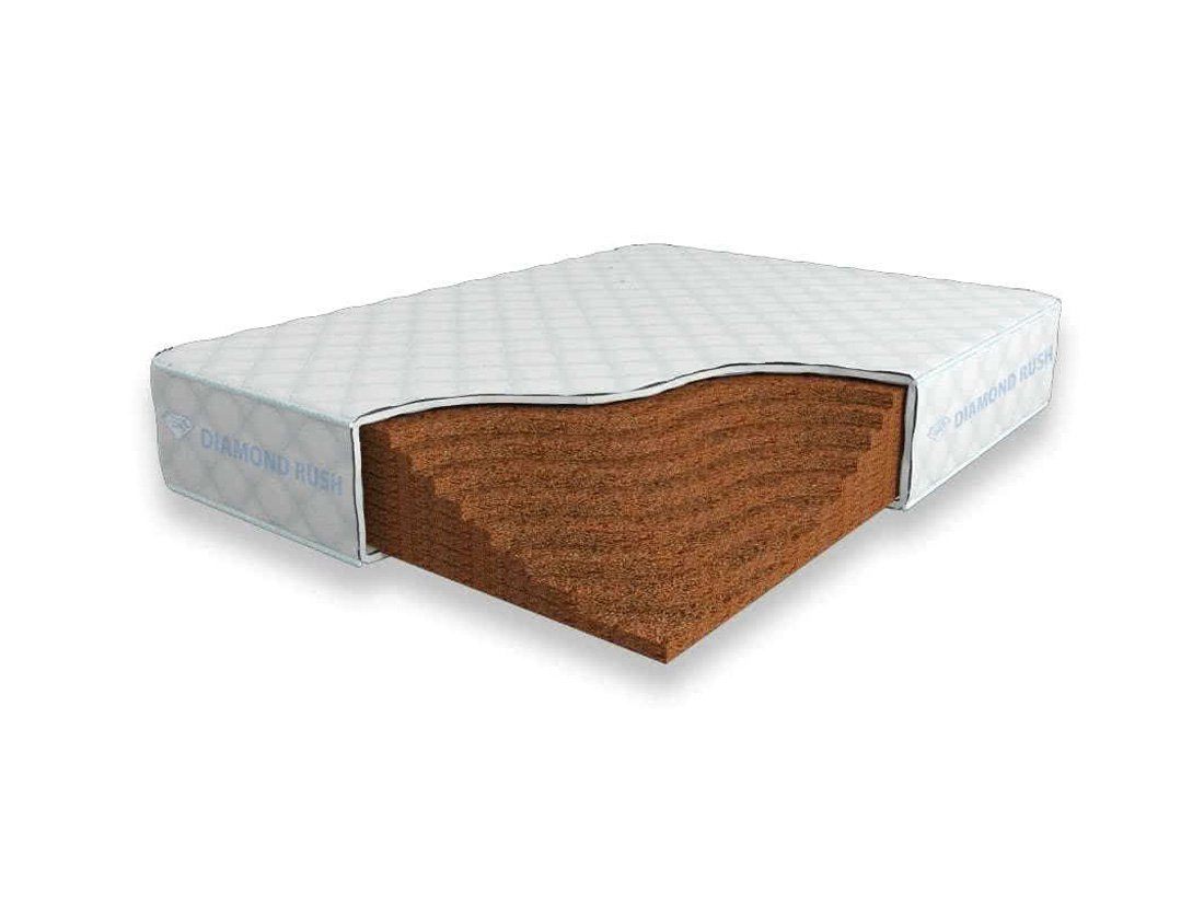 Матрас Diamond Rush Solid Cocos 24 DR является беспружинным, т.е. не имеет в своей основе пружинного блока. В его состав входят один или несколько слоев латексированной кокосовой койры. Это один из самых жестких материалов. Матрас, выполненный целиком из кокосовой койры, в меньшей степени обладает анатомическим эффектом.