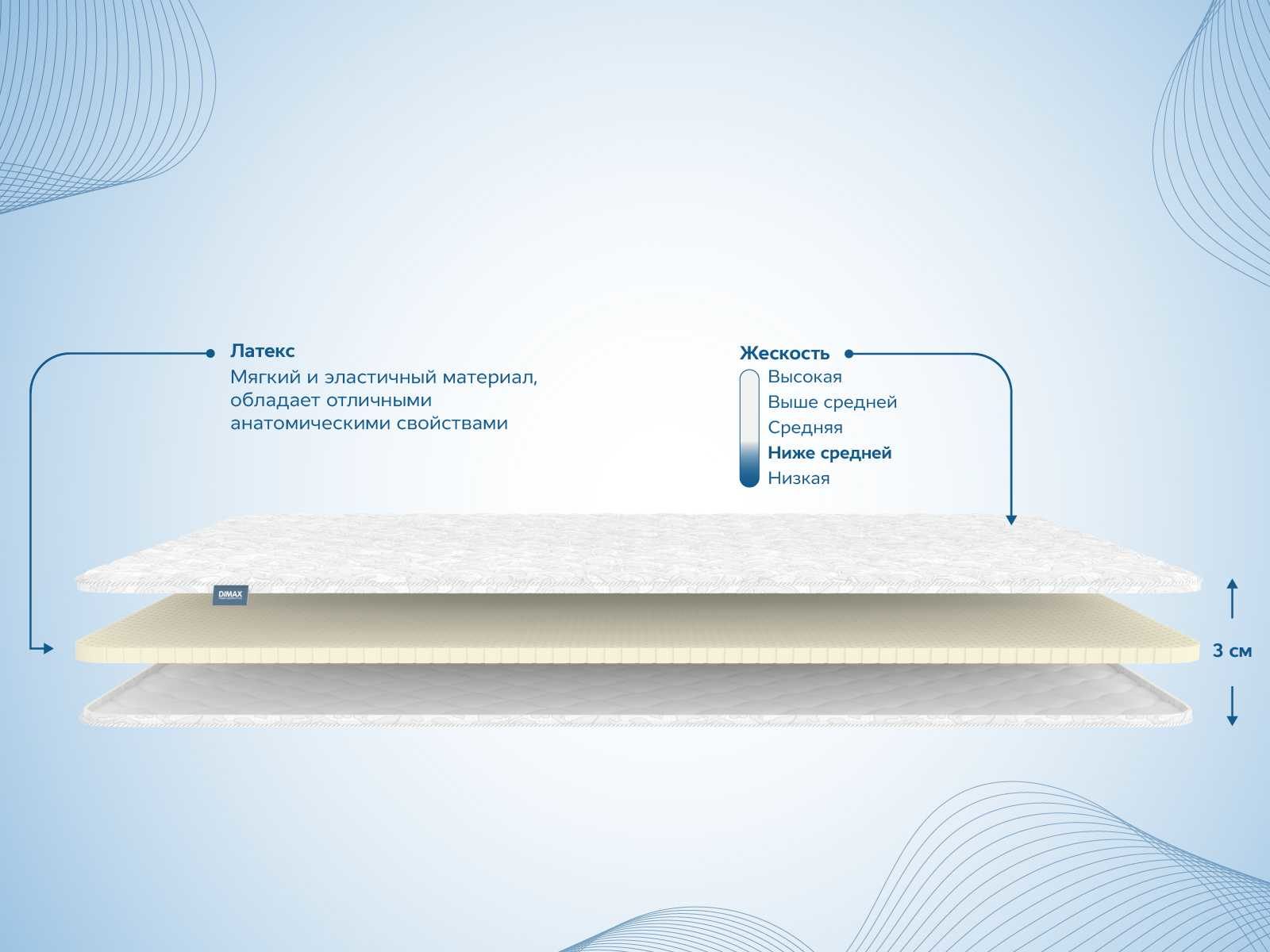 Мягкий ортопедический наматрасник Димакс Латекс 3 см — это натуральный латексный топпер для выравнивания поверхностей на диване или кровати. Модель избавляет от неприятных бугров, швов, стыков и других неровностей, обеспечивая комфортный и расслабляющий сон.