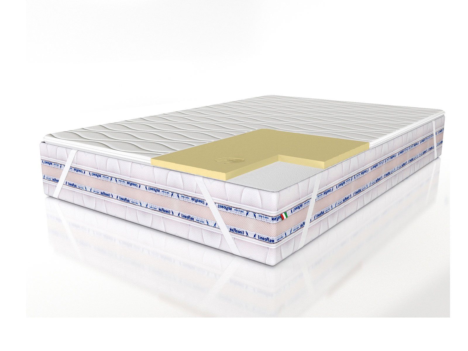Наполнители: MIRROR FORM - автомоделируемый и термочувствительный материал. Эти свойства обеспечивают равномерное распределение веса человека по поверхности материала, придавая ровное положение позвоночнику и обеспечивая отличную циркуляцию крови. MIRROR FORM, деформируясь под рельефы человеческого тела, легко восстанавливается после снятия нагрузки. Благодаря структуре из открытых клеток легко впитывает влагу. Эта пена обрабатывается специальными препаратами (NOBACTEL), что наделяет ее бактерицидными свойствами. Высота слоя - 4 см.