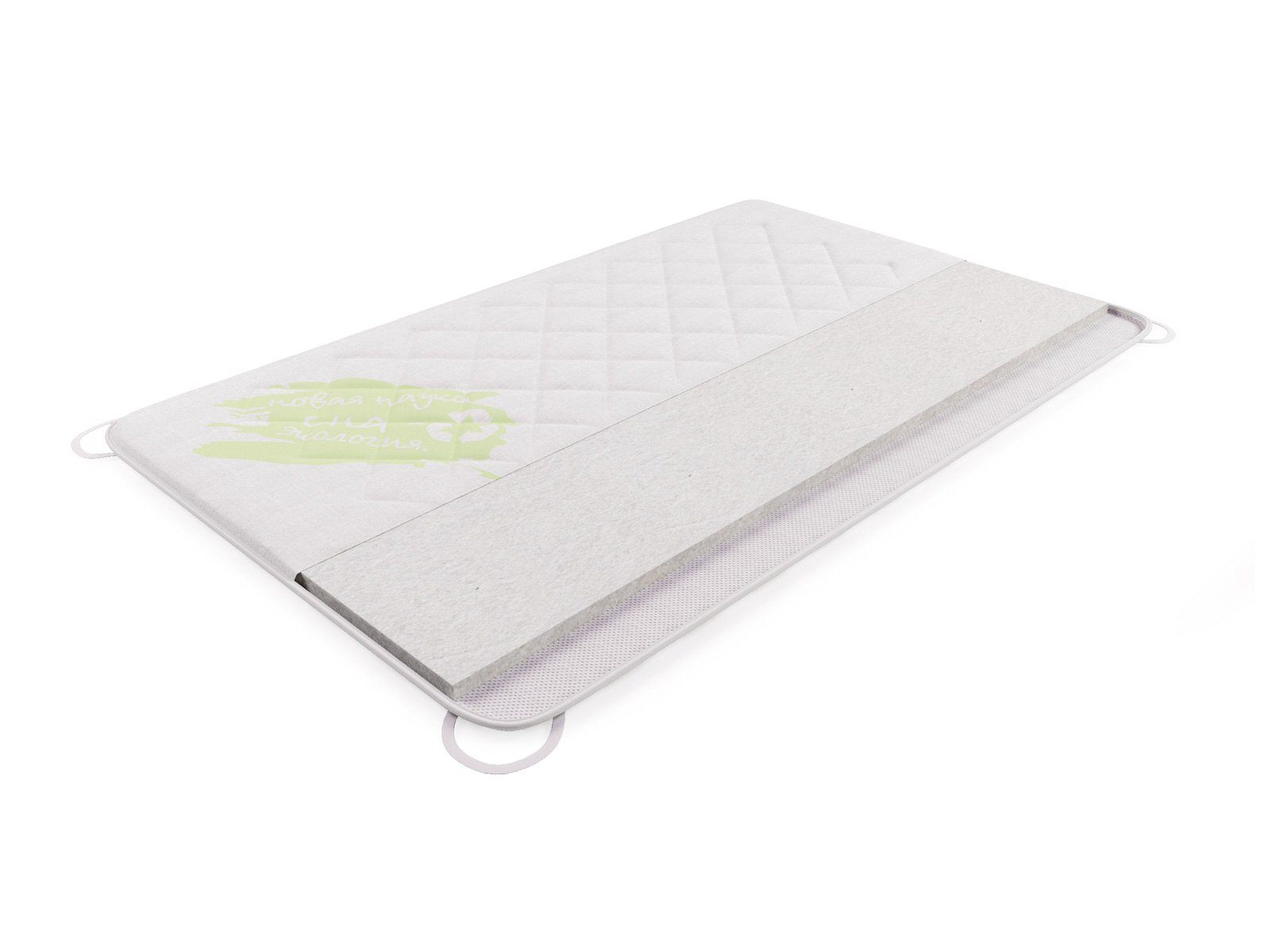 Наполнитель - синтепон, который произведен из переработанного пластика. Для того чтобы наматрасник не съезжал, по углам пришиты резинки-фиксаторы.