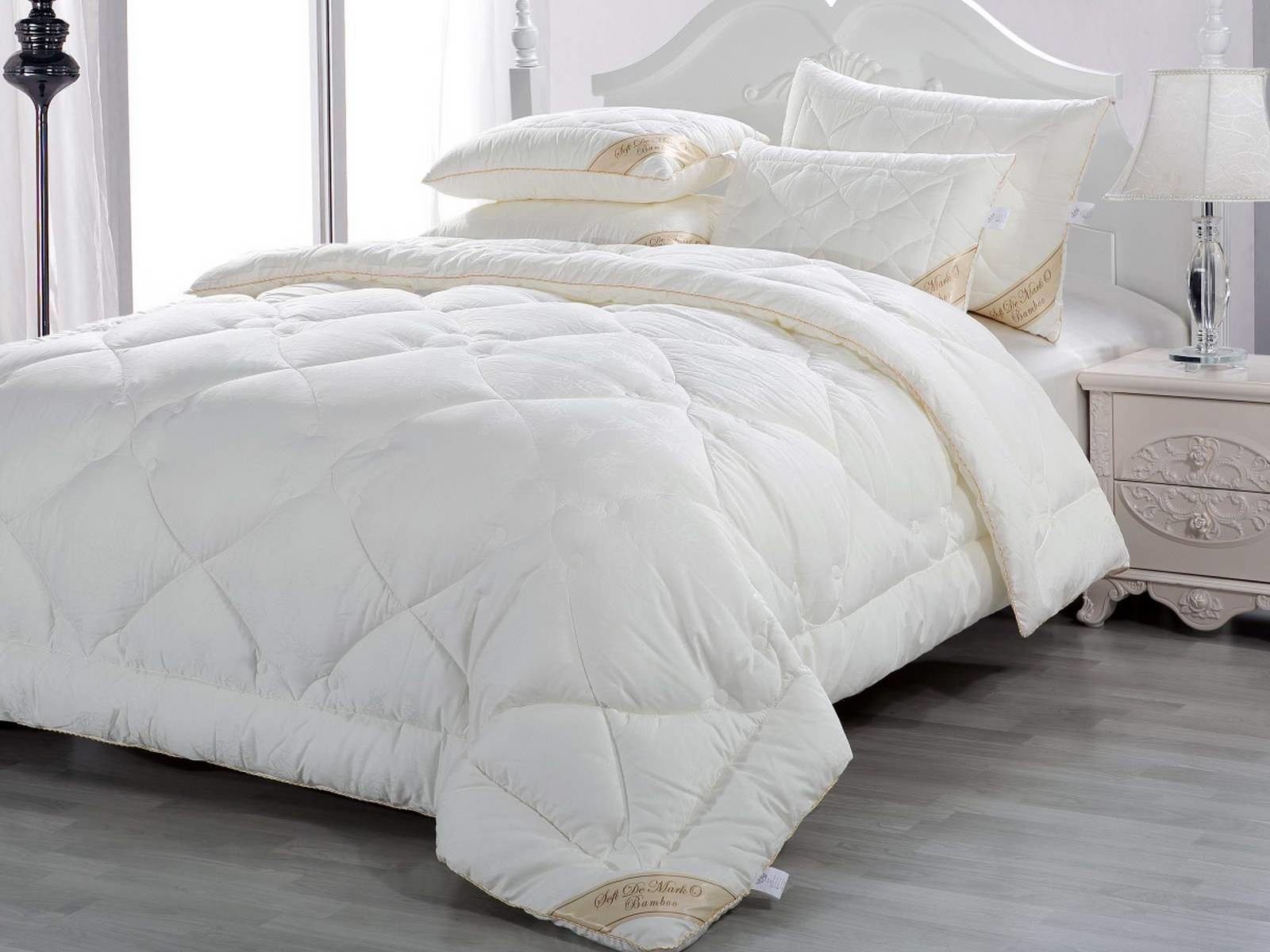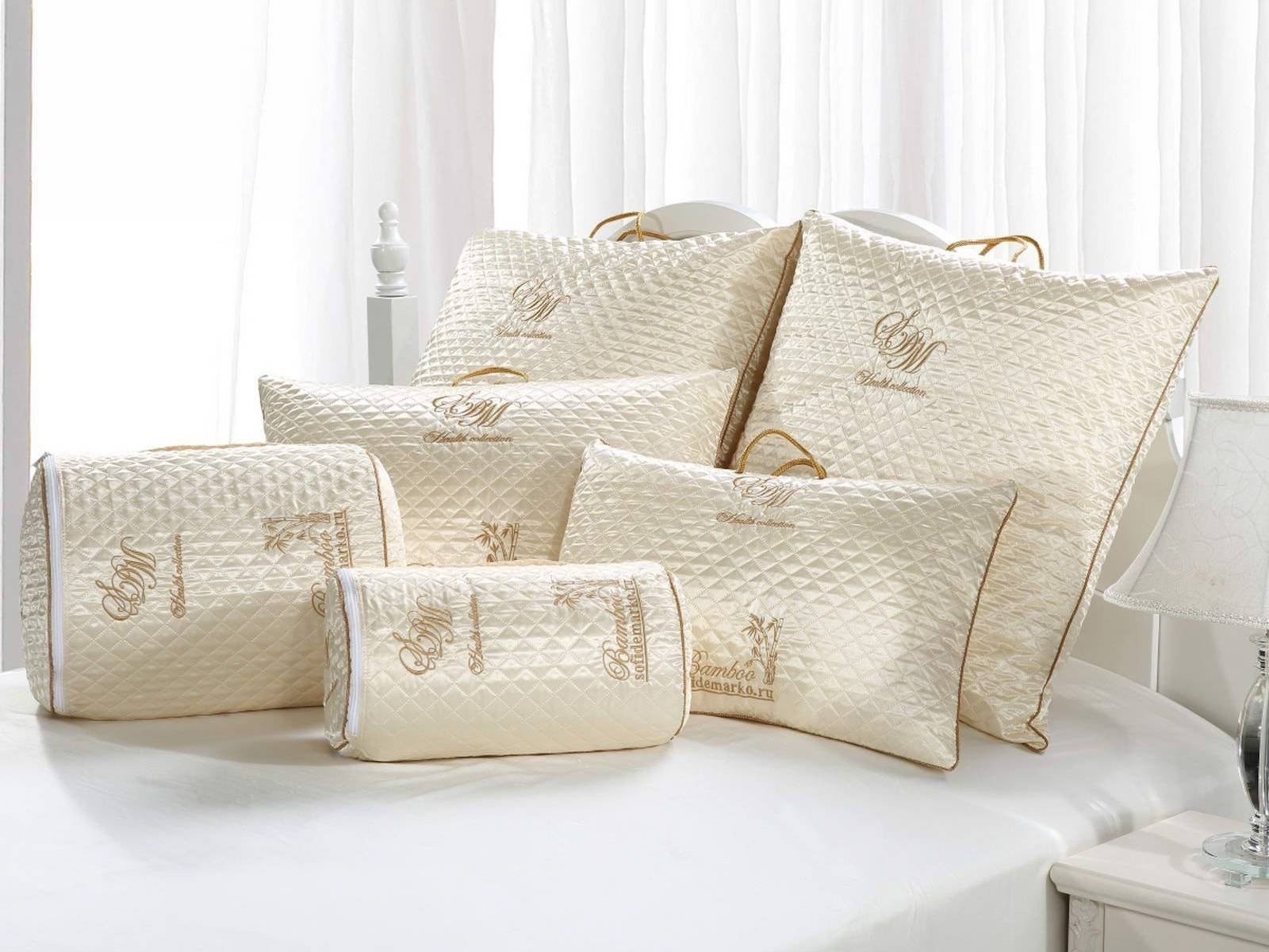 Бамбуковые одеяла отличаются долговечностью, прочностью и высокой износостойкостью. Они не вызывают никаких раздражений на коже человека, идеально подходят людям, страдающим аллергией и астмой. Чехол подушек и одеял серии "Бамбук люкс" украшен жаккардовыми рисунками в форме бамбуковых веточек.