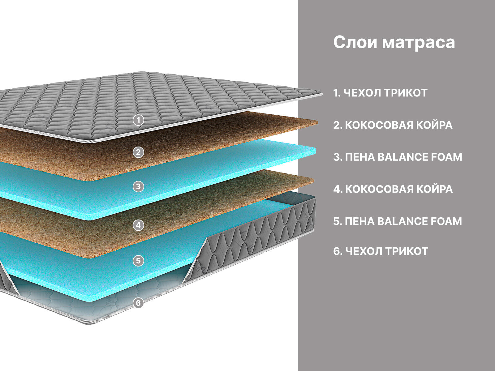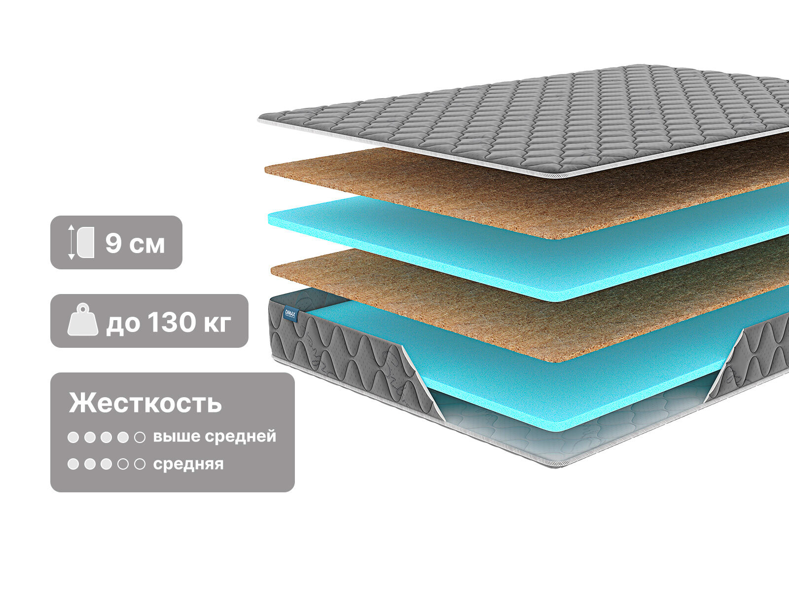 Кокосовая койра усиливает матрас и позволяет выдерживать большие нагрузки.