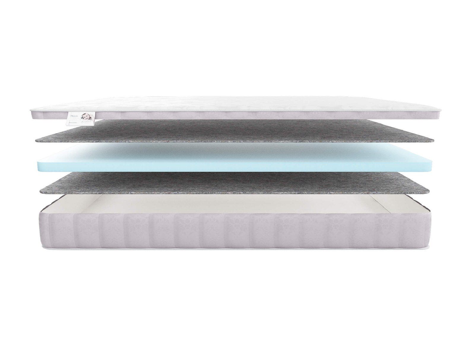 Сверху и снизу от блока пены установлены прослойки термофиксированного фетра. Благодаря такому решению матрас обретает дополнительную жёсткость и износостойкость.