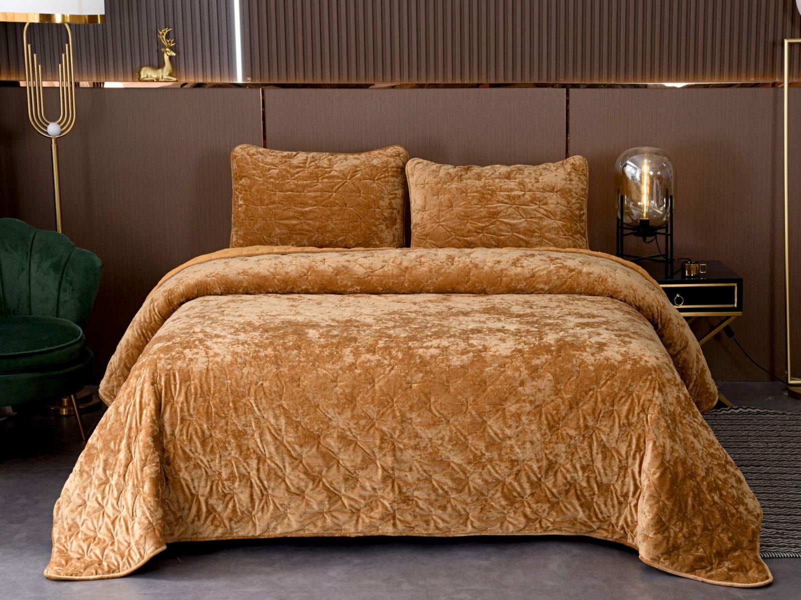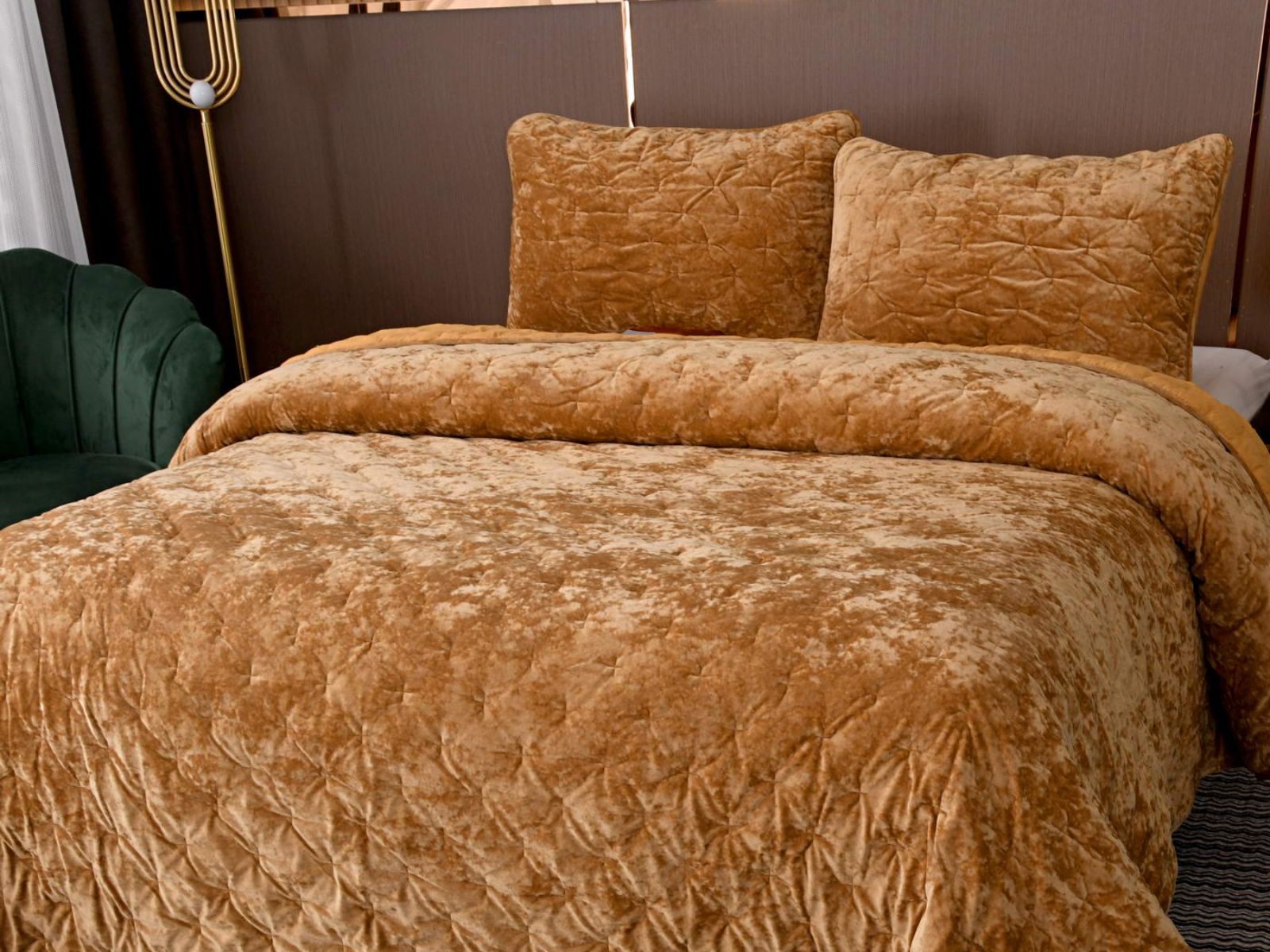 Бархатное покрывало Алира выглядит роскошно и элегантно, оно придаст спальне стильный и изысканный вид. Бархатную ткань начали изготавливать еще в Средние века, её использовали в оформлении дворцов и изготавливали плащи и головные уборы для знати. Теперь и вы можете прикоснуться к этой роскоши! Бархатная текстура приятная на ощупь, а из-за особого плетения ткани, игра света на ней выглядит благородно. Поэтому покрывало Алира создаст необычайно уютную атмосферу в вашей спальне.