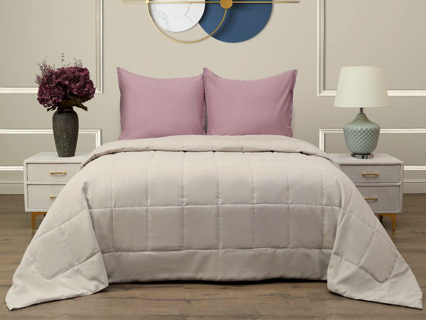 Ткань верха – бархатистый канвас. Канвас отлично себя зарекомендовал как износостойкий и плотный материал обеспечивающий мягкий противоскользящий эффект. Покрывала имеют классическую для канваса машинную стежку «квадрат». Плотная и мягкая фактура ткани канвас не оставляет зацепок, изнаночная сторона выполнена из матового и нежного тика. Такое покрывало украсит собою спальную или гостиную комнату, органично подчеркнет Ваш утонченный стиль.