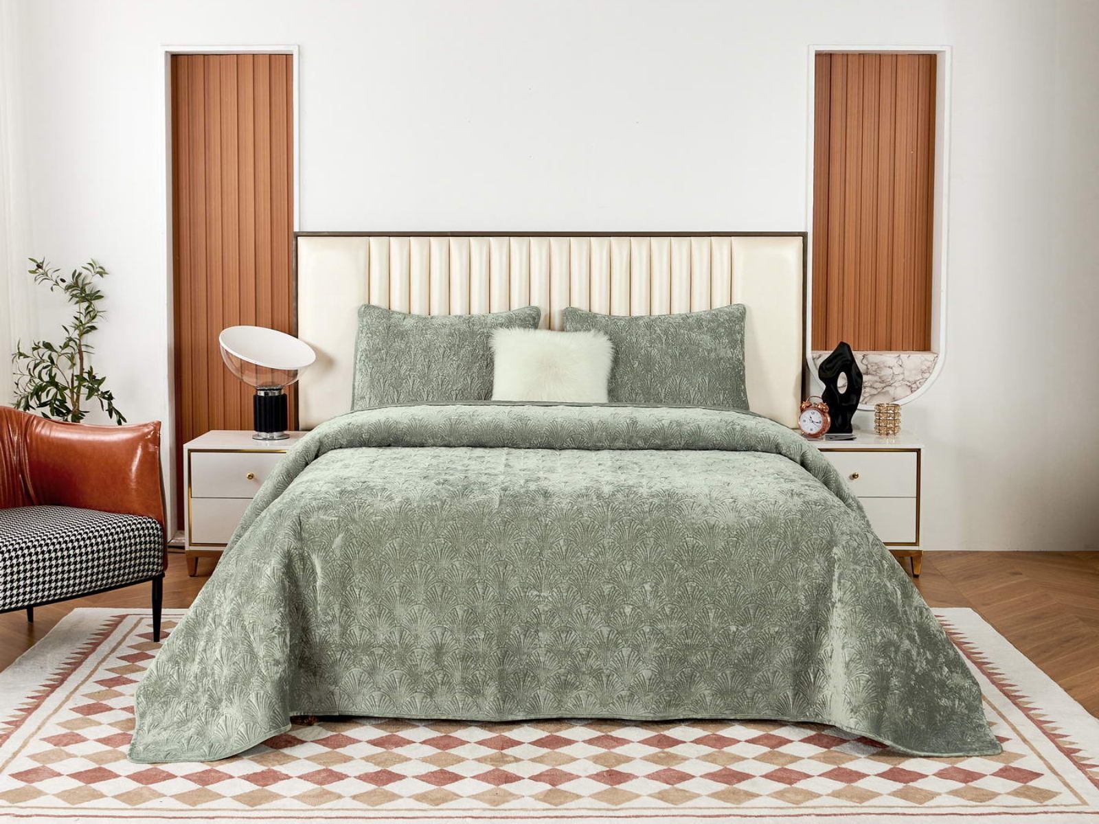 Очаровательное покрывало "Розалин" – идеальный спутник вашего отдыха и уюта. Это воплощение комфорта и стиля создано из высококачественного бархата в различных трендовых цветах и обязательно подчеркнёт уникальность вашего интерьера.
