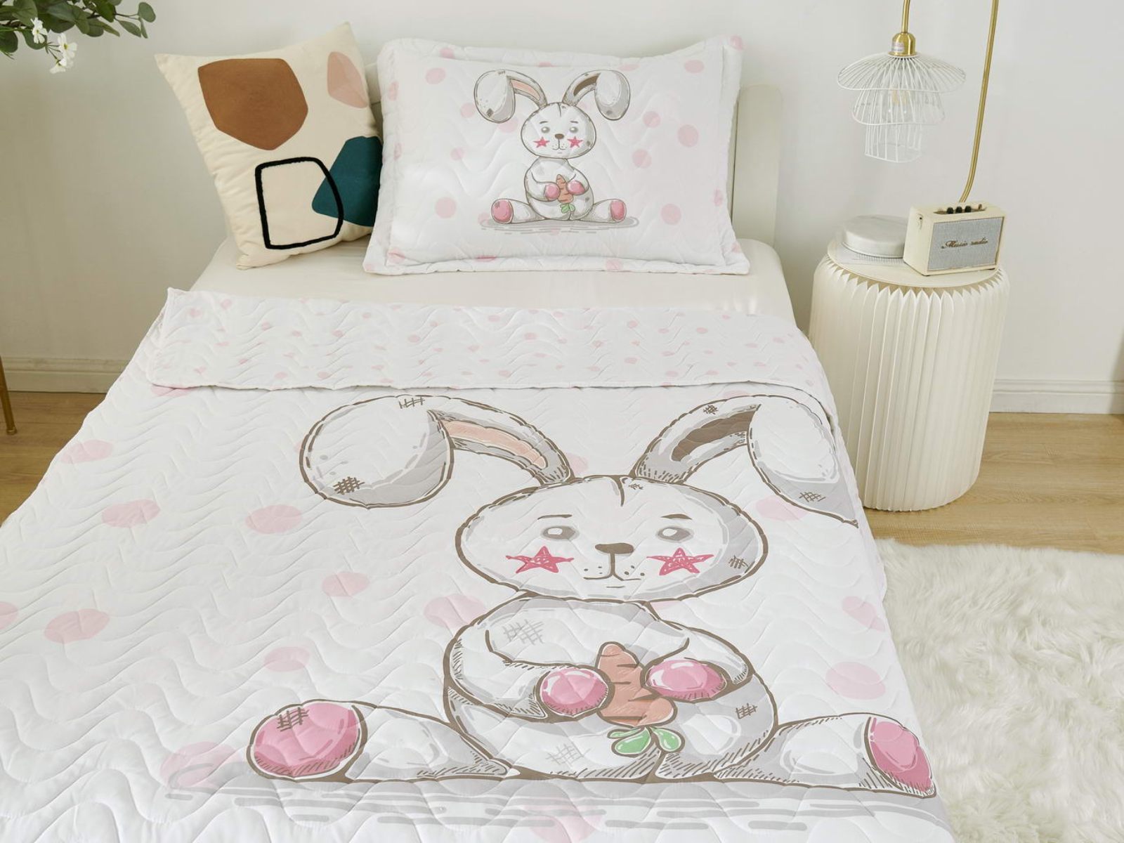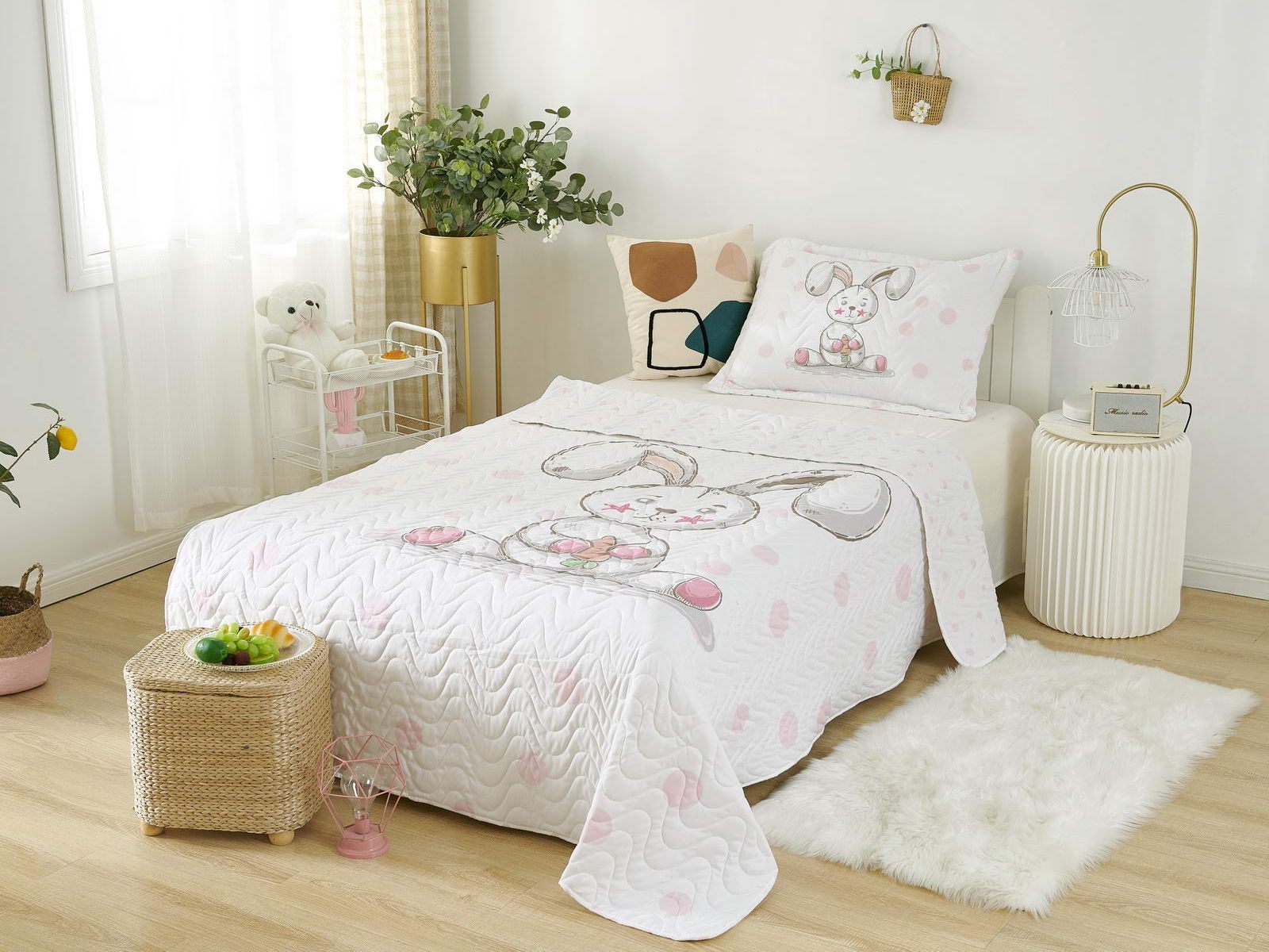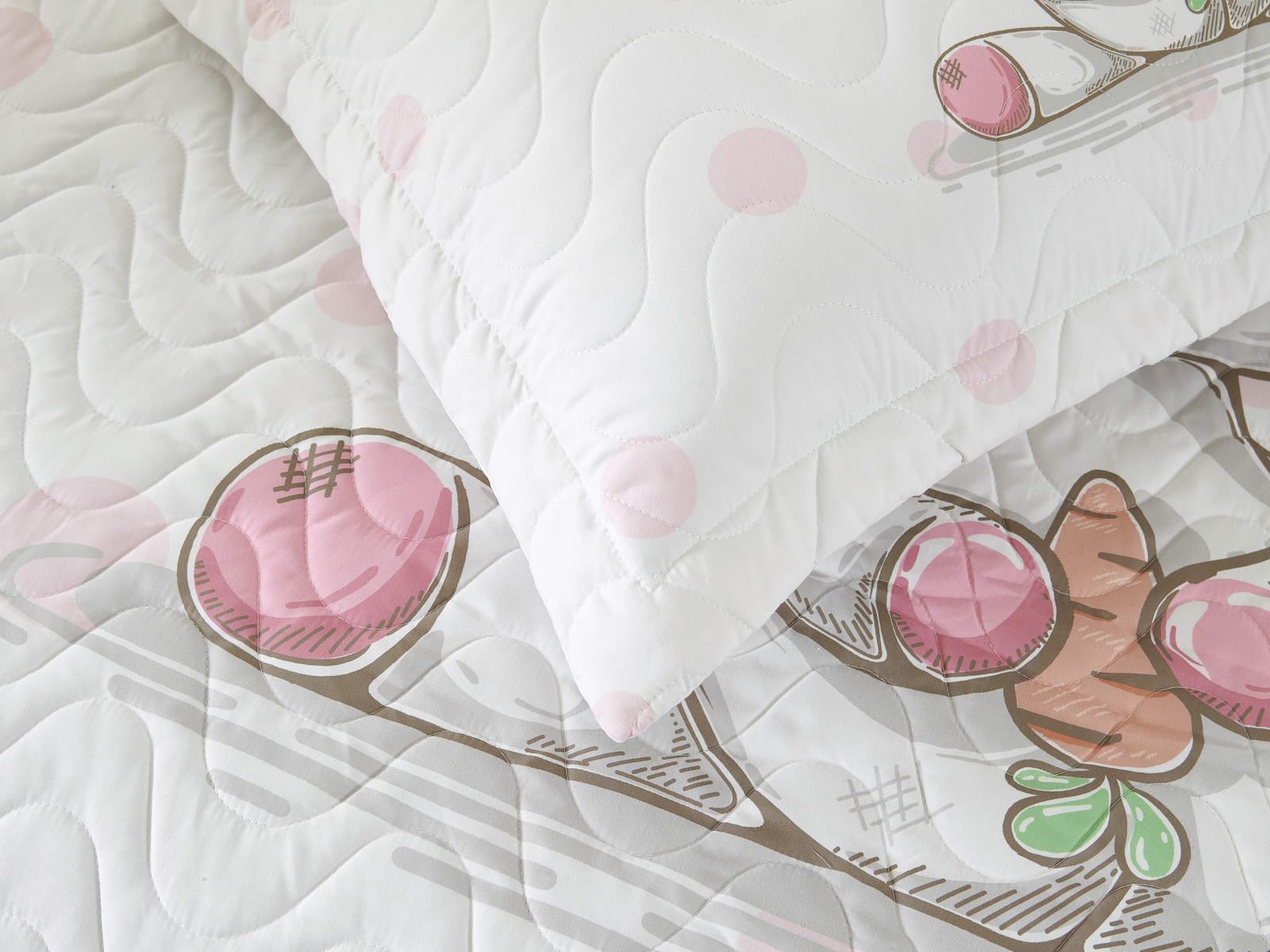 Детские покрывала - это особая забота об уюте и комфорте ребенка. Красивое, стеганое покрывало коллекции «Sunny day» придаст любой детской спальне яркую индивидуальность. Волнистые стежки делают изящные покрывала еще более выразительными и изящными. К ним в комплекте идут наволочки, у них есть интересная особенность, которая непременно понравится ребенку– небольшие ушки.
