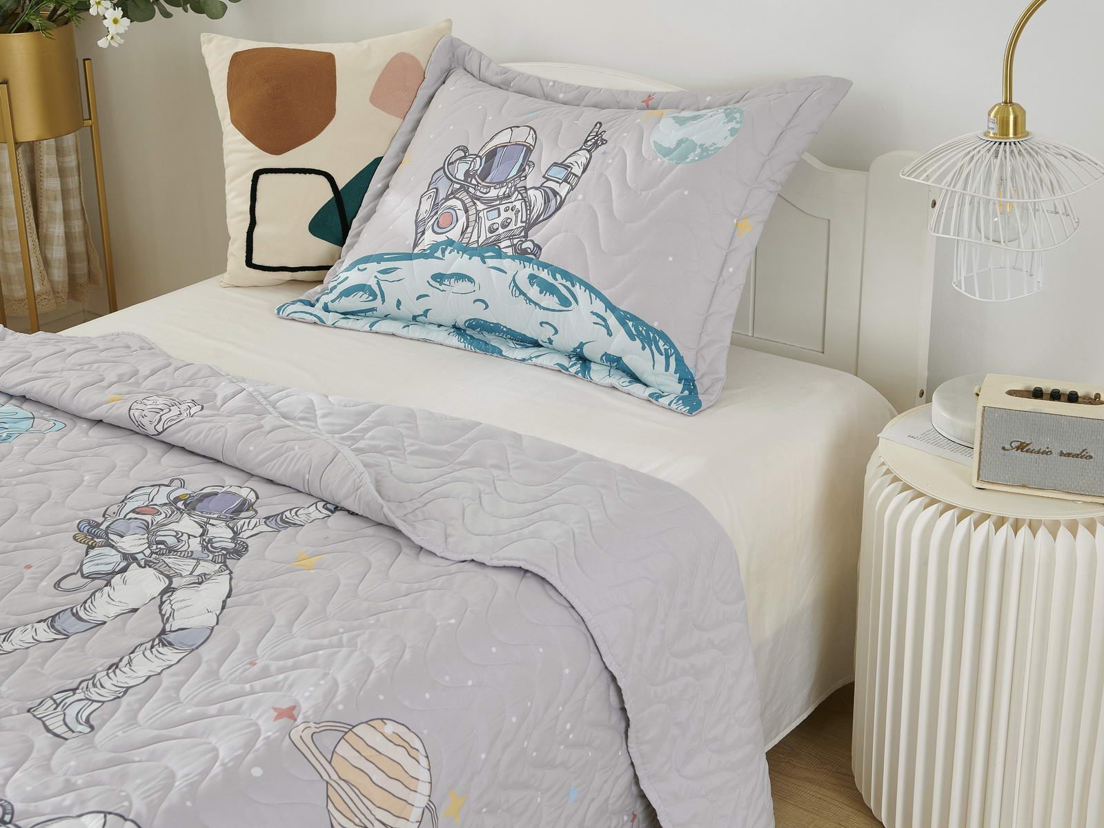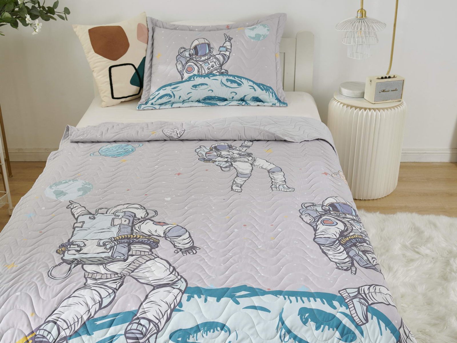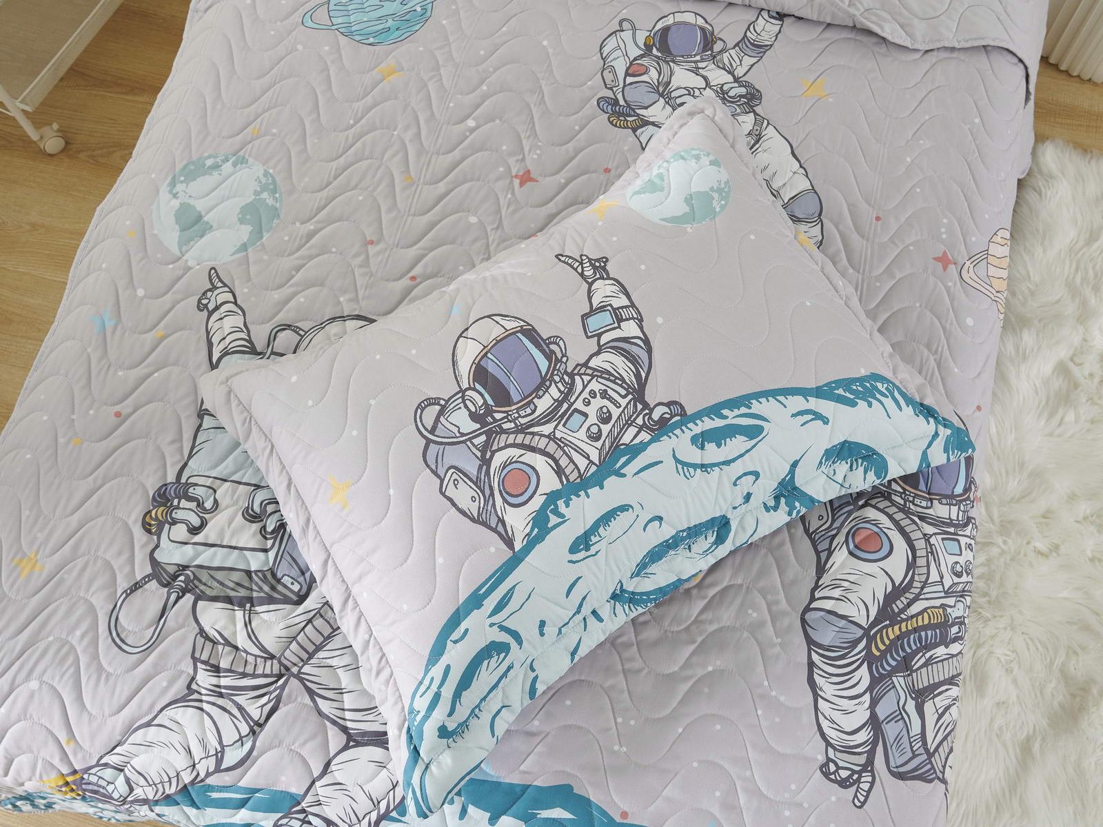 Детские покрывала - это особая забота об уюте и комфорте ребенка. Красивое, стеганое покрывало коллекции «Sunny day» придаст любой детской спальне яркую индивидуальность. Волнистые стежки делают изящные покрывала еще более выразительными и изящными. К ним в комплекте идут наволочки, у них есть интересная особенность, которая непременно понравится ребенку– небольшие ушки.