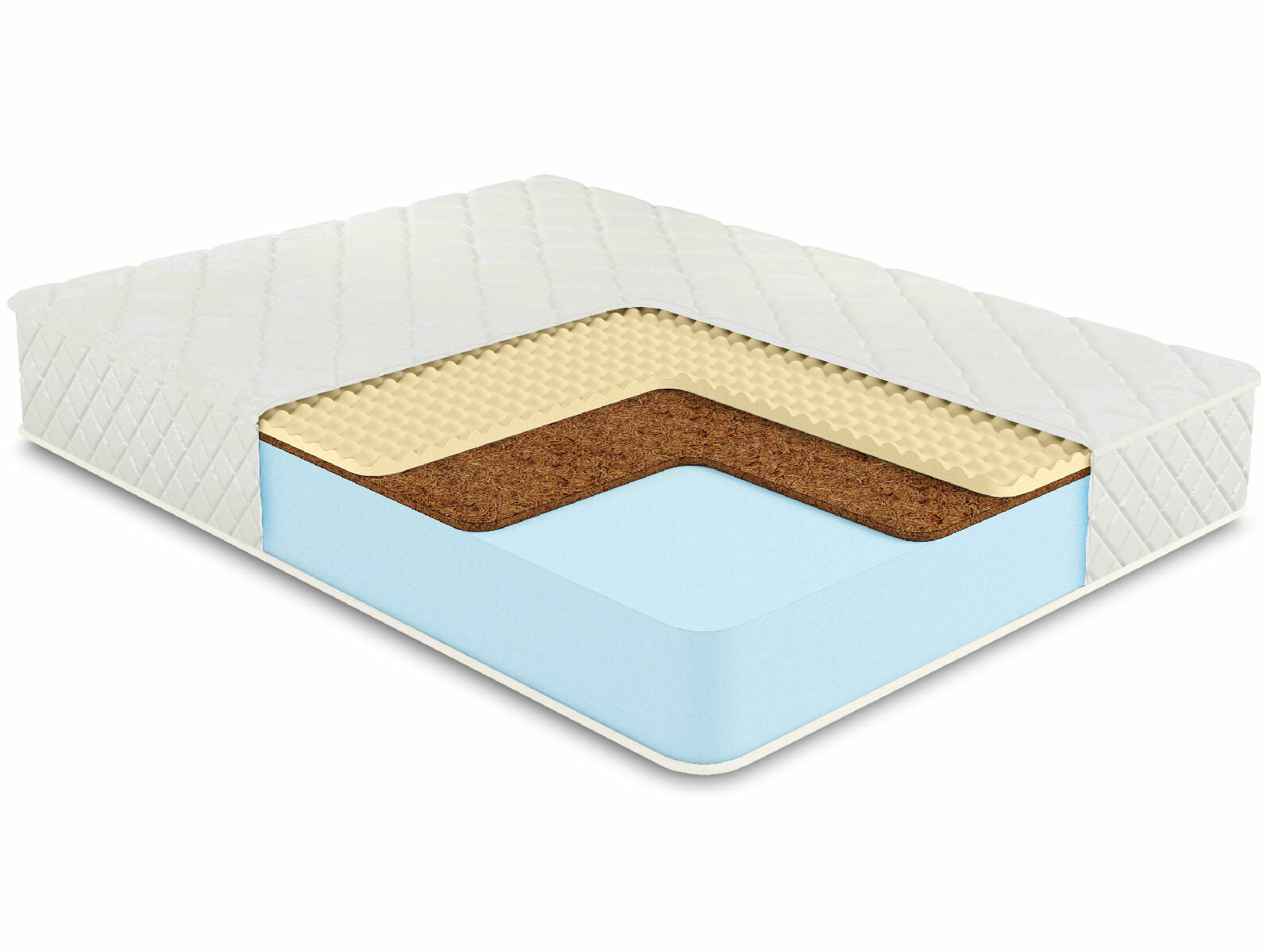 Чехол матраса из хлопкового жаккарда, который обладает высокой износостойкостью, простеган на Холлконе и имеет очень длительный срок службы. Ткань чехла может немного отличаться по рисунку, а также по оттенку цвета, это не влияет на ее свойства и качество.