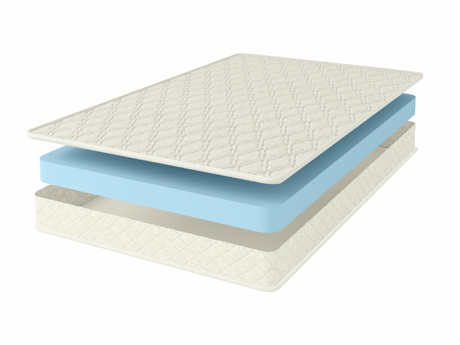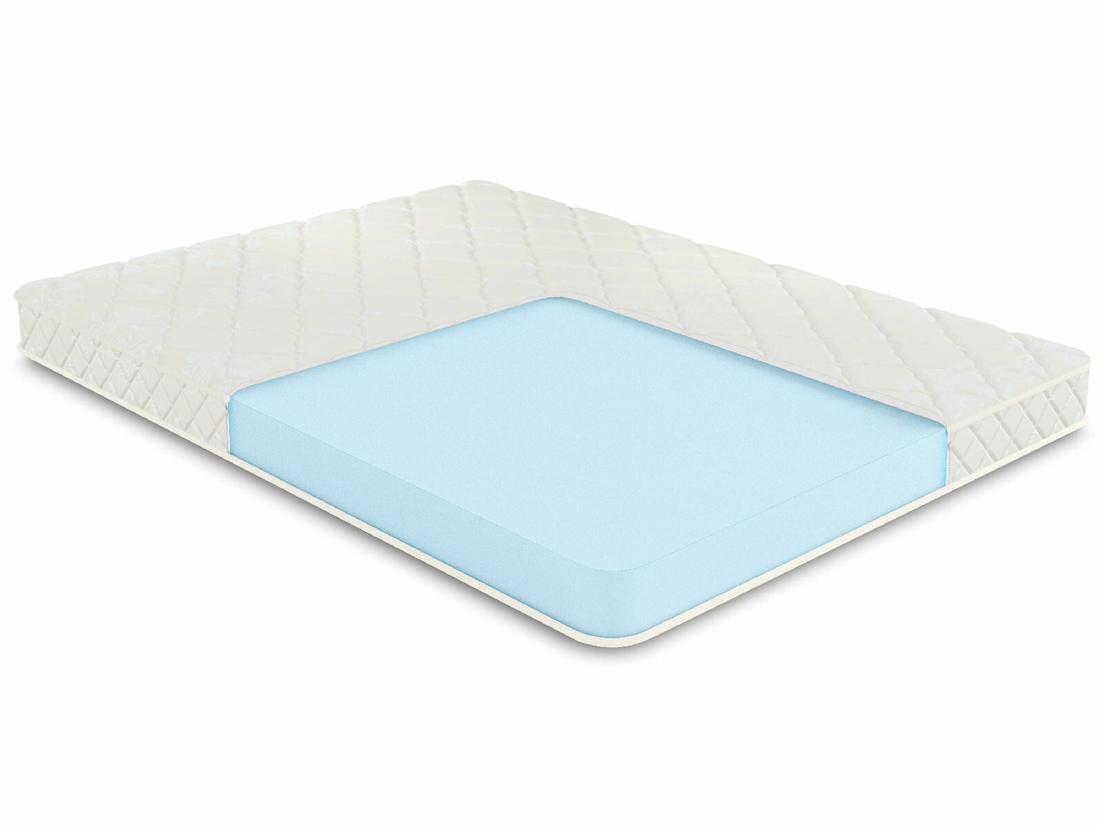 Чехол матраса шьётся из хлопкового жаккарда – практичной и надёжной ткани с высоким показателем износостойкости. Для смягчения поверхностей используется 100 гр холлкон, на котором простёгивается вся обивка матраса.