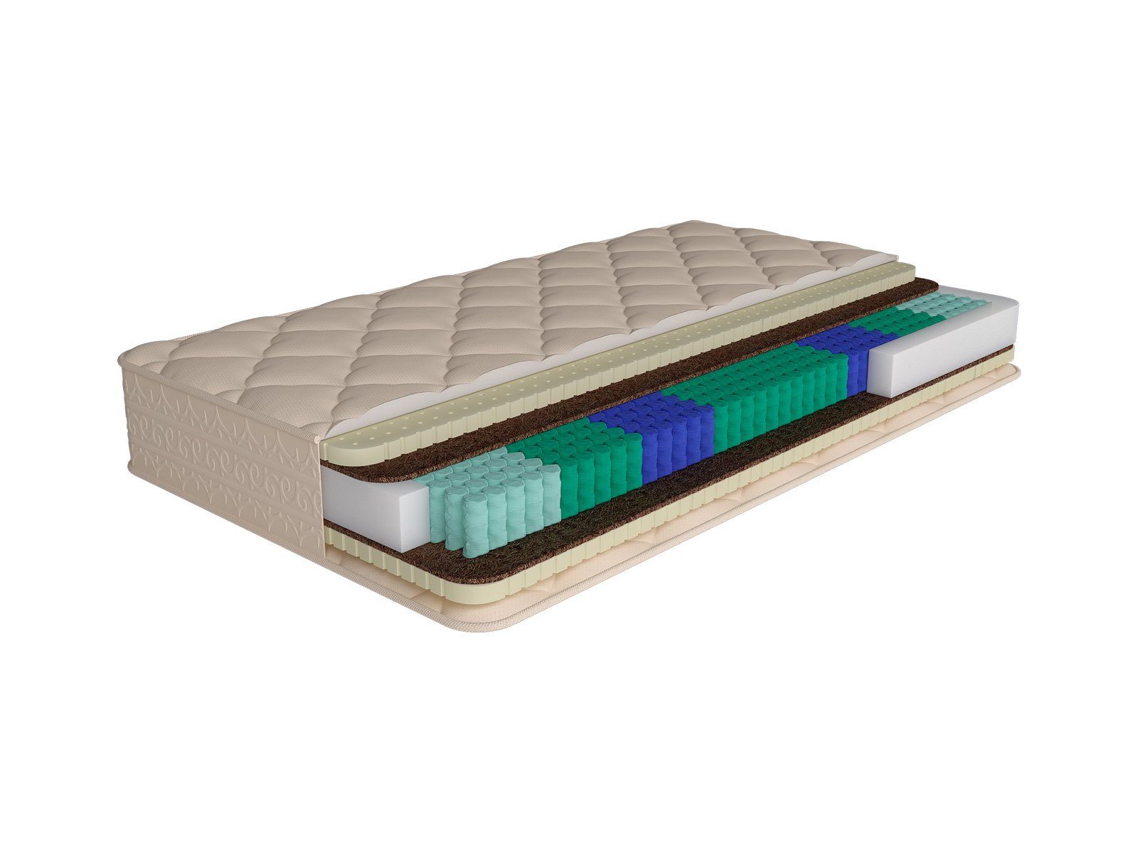 Койра кокоса – натуральный жёсткий материал, который передаёт матрасу ортопедические свойства и качественную поддержку.